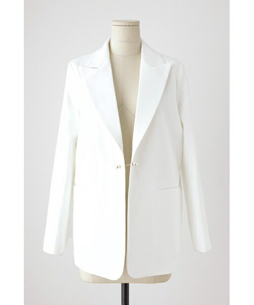 大きなパールバックルが特徴の ジャケットをご紹介いたします。 清潔感のあるホワイトジャケットなら ベーシックなTシャツにデニムだけ着ても◎ メンズライクな作りですが、 大きめのパールが女性らしさある雰囲気です♪ パーティーやビジネスシーンでも活躍できる ベーシックアイテムです。 ◆COLOR : ホワイト ◆SIZE : FREE ◆モデル着用SIZE :ホワイト/FREE