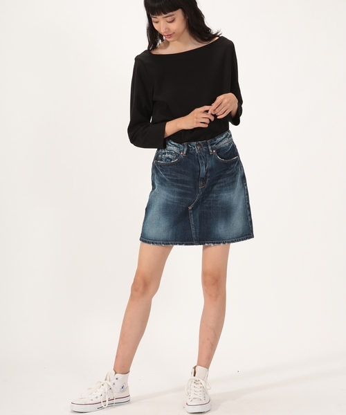 セポのベーシックなデニムスカート。スウェットやニットとかに合わせてアクティブスタイルには欠かせないアイテム。これからの季節でトップスにボリュームが出るときにボトムスを軽くするのにもってこいです。 ※デニム特有の加工感により商品ごとに微妙に風合いが 異なります ※ダメージ加工が施されています。 洗濯:洗濯機使用可