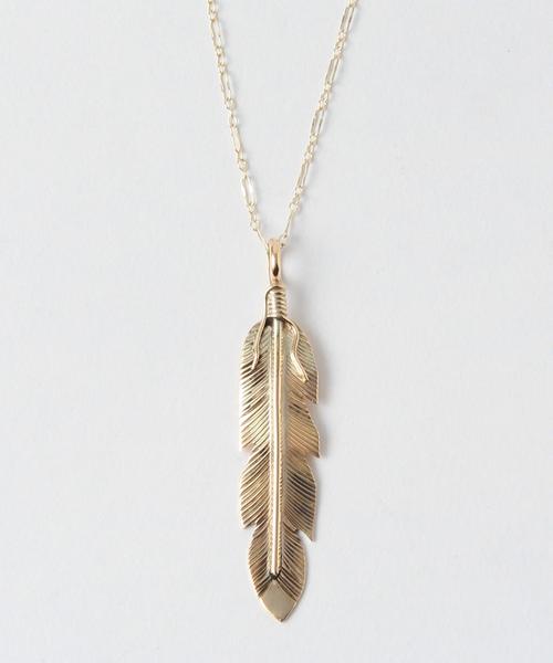 ■BEAUTY&YOUTH別注アイテム■羽根モチーフのネックレス。繊細な質感とメタリックな光沢とのバランスが良く、胸元に上品なエスニックムードを添えてくれます。大ぶりのサイズで存在感も十分に備え、シンプルなコーディネートのワンポイントとしても最適です。Tシャツやカットソーに合わせ、ラフにまとめてはいかがでしょうか。店舗にてお問い合わせの際は、全国のBEAUTY&YOUTH 各店舗まで下記の品番をお申し付け下さい。品名:J/D×BY FEATHER PD GD 品番:1433-452-4666