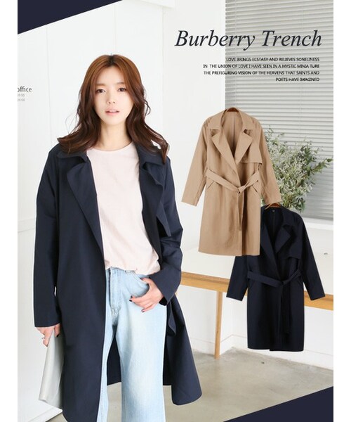 【コンパクトバーバリートレンチ】柔らかくともコシのある素材を使用したトレンチコート。シルエットは裾に向かってフレアを出したAライン。春から梅雨時期までお使い頂ける素材となっています。