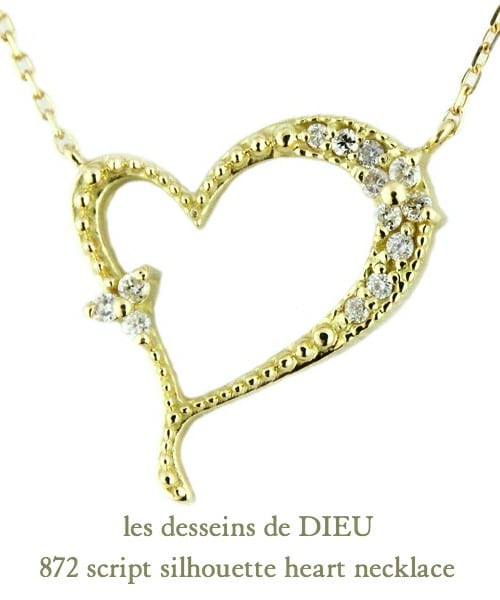「 Script Silhouette Heart 」 筆記体を思わせる流線型のハートが美しい 大きめ ハート 華奢ネックレス 細部までミル打ちをほどこした、クラシカルな雰囲気たっぷりの、女性らしいフェミニンなハートネックレス。 普段使いから、ここぞというお出かけの際にも活躍出来そうなネックレスです。 18金イエローゴールド製
