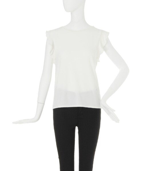 >> Tシャツ×Tシャツ=5000円(税抜)>> Tシャツ×カーデ=8500円(税抜)>> Tシャツ×ジャケット=9500円(税抜)袖のフリルデザインがポイントのタンクトップ。ストレッチがきいた素材で着心地もバツグン。フリルが二の腕をカバーしてくれます。他はシンプルなので合わせるボトムを選ばないのも嬉しいポイント。