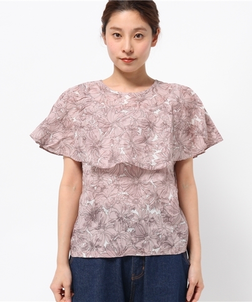 細い線で描かれた繊細なフラワープリントがとってもロマンティック♪ケープのようなフレアが何気ない動きも華やかに演出してくれます。開放的になる季節、デザイン性のある大胆なトップスで着こなしもフレッシュに。