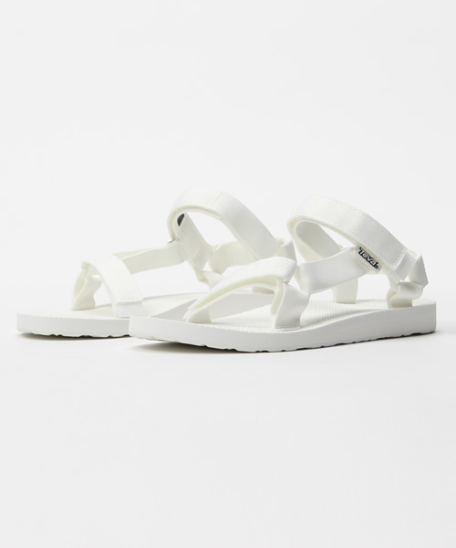 最もベーシックなTevaの代表モデル Original Universal(テバ オリジナル ユニバーサル)は、グランドキャニオンの1人の若きリバーガイドが世界で初めて靴とサンダルの良いところを融合させ開発した、オリジナルスポーツサンダル初期のモデルです。 伝統的なナイロン帯ひも、EVAトップソール、耐久性の高いラバーのアウトソールを搭載したOriginal Universalは、当時の印象を残し現代へと復刻しました。 ホワイトは2016年春夏新色です。 日常生活に必要のない過剰な機能を省き、機能性と耐久性の最適なバランスを追求したアウトソール素材「Durabrasion」を使用。 【TEVA】 Tevaブランドが誕生したのは1984年のこと。 ひとりのリバーガイドが、汎用性に優れたサンダルを求めて、開発に乗り出したのがはじまりだ。 グランドキャニオンを流れるコロラド川で、ラフティングガイドをしていたマー・サッチャーである。 その頃に水辺で遊ぶ人々が履いていたシューズといえば、滑りやすく、すぐ脱げてしまうようなビーチサンダルやアスレチックシューズ、ハイキングシューズなど。 濡れたら重くなり、乾くのにも時間が掛かるというものばかりだった。マー・サッチャーは、こうした不満を解消すべく、革新的なフットウエアの開発に乗り出した。そして、生まれたのが、ヘブライ語で「自然」を意味する「Teva」ブランドである。