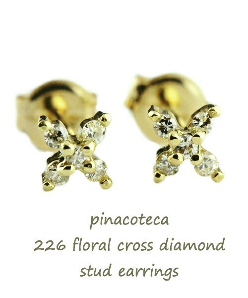 「 Floral Cross 」 5石のダイヤが輝く、クロスにもフラワーのようにも見える華奢ダイヤモンド ピアス 極シンプルでありながら、耳元でキラリと輝くダイヤモンドは、お顔周りを柔らかく見せてくれます。 シンプルだからこそ普段使いにも最適な ダイヤ輝く 華奢ピアスです。 18金イエローゴールド製