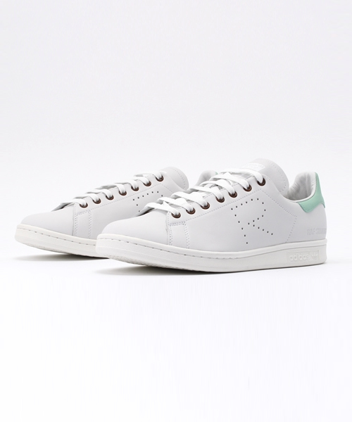 クラシックなスタンスミスに【RAF SIMONS】独自の解釈が加えたデザイン。 adidasのトレードマークであるスリーストライプスをパンチングで表現した大きな「R」に置き換え、ヒールには「RAF SIMONS」のロゴが型押しされています。 また、スタン・スミスのトレードマークでもあるベロに描かれている"顔"の部分は一方にはスタンスミス、もう一方にはラフ・シモンズの似顔絵が描かれているのも注目。 [ADIDAS×RAF SIMONS(アディダス×ラフ シモンズ)] スポーツメーカー最大手の「adidas」とベルギー出身のデザイナー「RAF SIMONS」のコラボレーションライン。 パリ・ファッションウィーク開催期間中の「RAF SIMONS AUTUMN/WINTER 2013-14 メンズコレクション」にて発表され、関係者に衝撃を与えたフットウェアコレクション。 90年代を髣髴とさせるハイテク系のデザインは、懐かしさの中にも新しさを感じるものに仕上がっている。