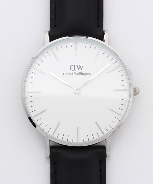 [DANIEL WELLINGTON(ダニエル・ウェリントン)] 2011年に設立されたスウェーデン発の腕時計ブランドです。ダニエル・ウェリントンの時計は現在、アメリカやスウェーデン、ノルウェーなど世界80カ国で取り扱われています。 シンプルで大きな文字盤に、薄いケース、好みに応じて付け替えられる豊富なカラーのNATOタイプベルト。 そんなスタイリッシュなデザインに加え、リーズナブルな価格も人気の秘密です。デザインバリエーションは大きく分けて、ラウンドフェイスにレザーを纏ったクラシカルなものと、NATOを使用したプレッピーなものの2つ。洗練されたユニセックスのデザインは、カジュアルからスーツスタイルまで、シーンを問わずフィットします。