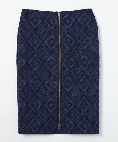 精巧な織り模様で表現したジャガード織りならではのエレガントさがあるタイトスカート。春のスタイルに一点投入で、ほどよいスパイスをプラスできそうな1枚。フロントのジップデザインがカジュアルなテイストをプラスしてくれるからスニーカーとの相性も◎。 ■商品のお色は、照明の関係で実物と多少の違いが生じることがございますので、ご了承ください。