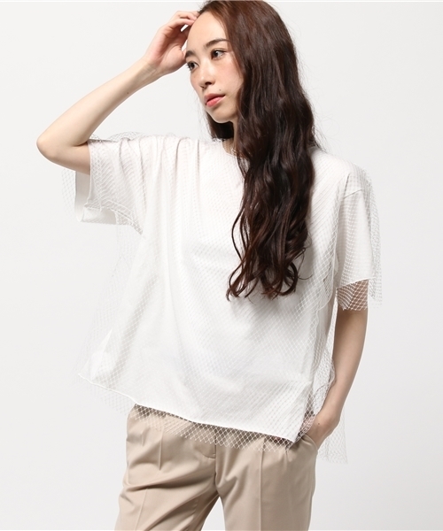 引き続き人気のメッシュが今シーズンはフェミニンな雰囲気で登場。背中のデザインや後の裾が長くなった細かいディティールもおしゃれ女子の心をくすぐるポイント。ベースのカットソーは程よいフィット感のシルエットに柔らかい素材なので着心地も抜群です。ワイドパンツと合わせた脱スポーティーなメッシュ使いのスタイリングで去年とは違う今っぽさをアピールして☆