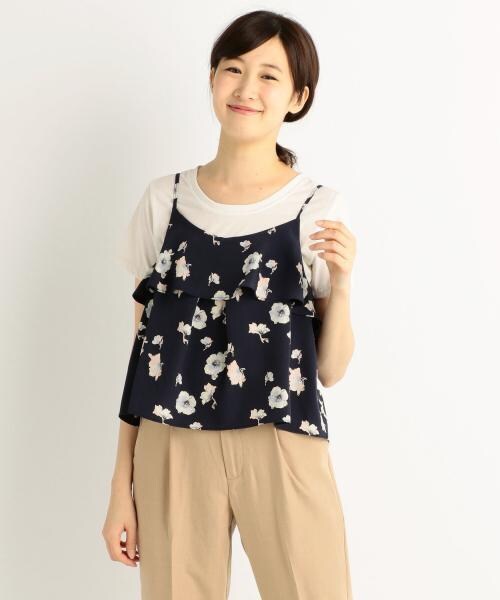 シンプルなカジュアルコーデにスウィートな表情をプラスする、オーバーキャミソールです。胸元に揺らめくフリルとフラワープリントが女心をくすぐるデザイン♪ほんのり広がるシルエットのスタイルカバー効果も見逃せません。吉田友利恵:170cm