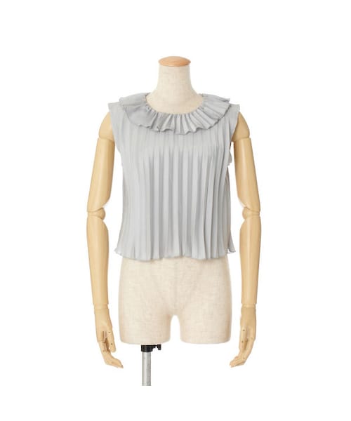 アコーディオンプリーツをふんだんに施したレディなブラウスがお目見え すとんと落ちるシンプルなボディは、すっきりとした印象で スカート・パンツどちらにも合わせやすい絶妙なシルエットです。 柔らかい印象を与えてくれるさらりとしたジョーゼット素材使用。 MATERIAL: 表地:ポリエステル100% 裏地:ポリエステル100% モデル身長: 150cm made in China サイズ着丈胸囲肩幅 Free48cm84cm37.5cm