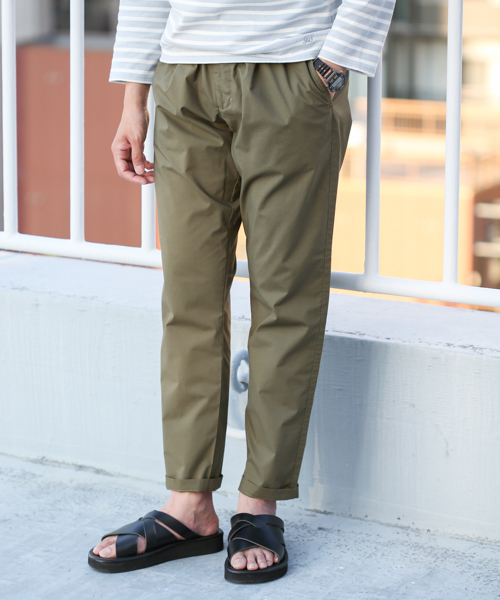 国産の上質なポリエステル・コットンストレッチウェザーを使用した1タックテーパードパンツです。腰回りには程よくゆとりがあり、膝下にかけてテーパードシルエットになっているため、すっきりとした印象でお召いただけます。コットンライクなストレッチ素材は、コーディネートの幅を広げてくれます。