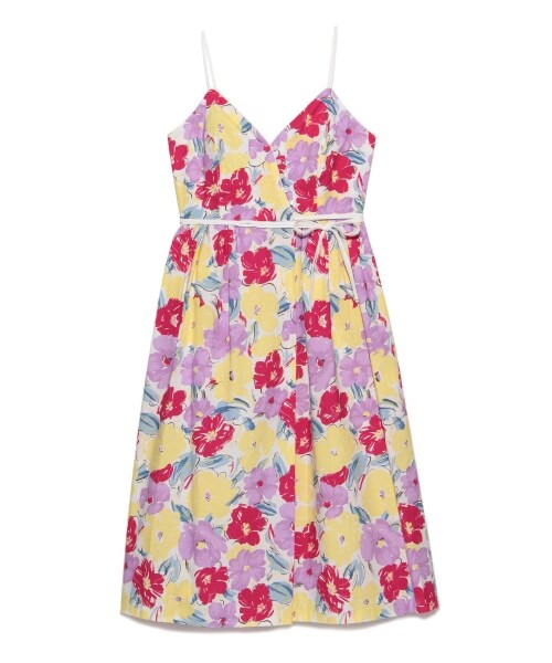 手描きタッチの大花柄プリントが、視線を誘うキャミワンピース。胸元を大きく開けるカッティングは、ネックラインをスッキリ見せ、抜け感たっぷりの着こなしを誘います。ラップ風デザインやウエストリボンなど、フェミニンなディテールが散りばめられた1枚。シーズン小物をプラスして、バカンスライクにまとめたいアイテム。※商品画像はサンプルのため、色味やサイズ等の仕様に変更がある場合がございますので、予めご了承ください。◆着用モデル:身長177cm バスト83cm ウエスト59cm ヒップ89cm 着用サイズ:F