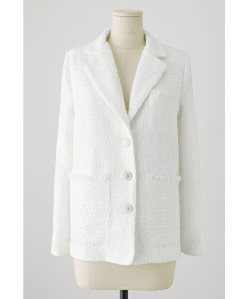 洗練された雰囲気漂う ツィードジャケットをご紹介いたします。 ベーシックなテーラードカラーで、 ゴールドのボタンがポイントです。 ポケットの上部が切りっぱなしに なっているのもアクセントになっていて素敵★ きちんと感のあるジャケットですので、 フォーマルなシーンで活躍しそうですよ♪ ◆COLOR :ホワイト ◆SIZE : FREE ◆モデル着用SIZE :ホワイト/FREE