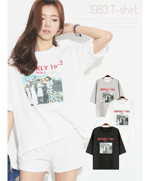 【ロックプリントラグランTシャツ】ルーズシルエットの七分袖Tシャツ。女性らしく、どんなボトムスにも合うシンプルな一枚。七分袖のロックTシャツが入荷*オオカミプリントが古着っぽく、こなれた印象!