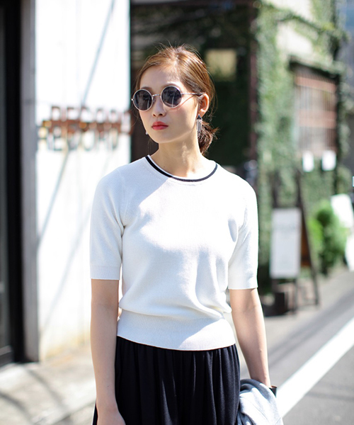 ラインデザインのクルーネックでさりげなくアクセントを添えたニットプルオーバーです。ゆとりを残しつつ身体のラインを程よく拾う計算されたシルエットや旬を感じさせる5分袖など、シンプルな中にもこだわりが見え隠れする1枚に。合わせやすいという強みを活かして、様々なテイストチェンジを楽しんで。