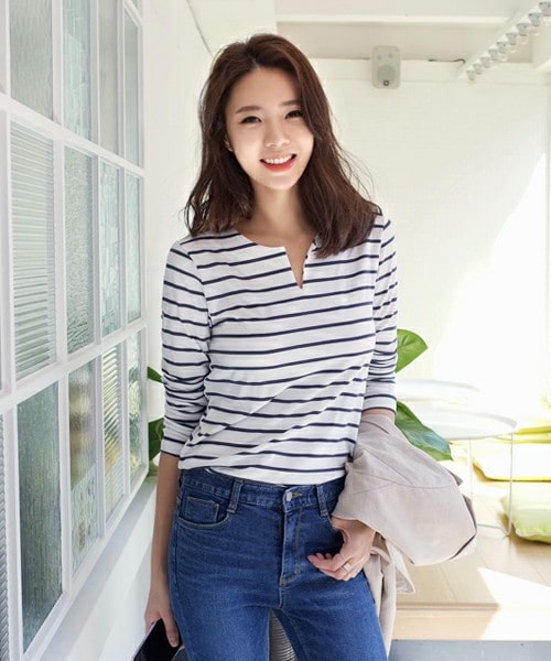 カジュアルなボーダーTシャツ。ネックラインに入っているスリットがポイント☆普通のVネックじゃ出せない開き具合が魅力的なアイテムです! ※WEARに記載してある金額と、DHOLIC通販サイトに記載してある金額にシステム都合上、稀に誤差が生じます。正しい金額はDHOLIC通販サイトに記載された金額です。