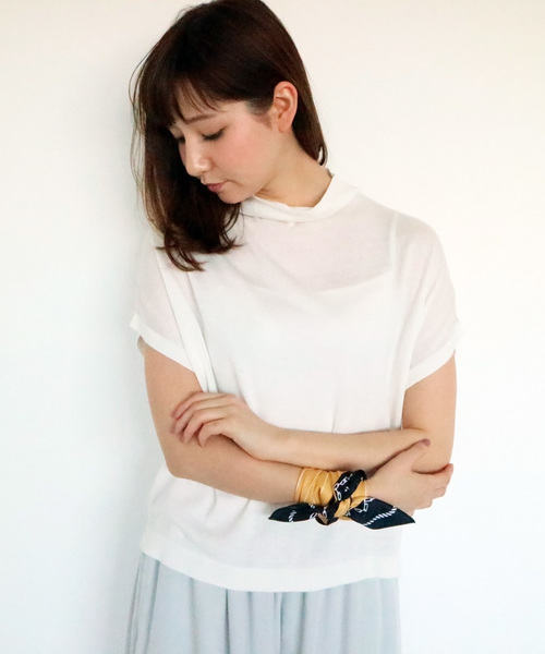 ユルッと感がこなれて見えるニットトップス!ドロップショルダーでヌケ感と、シンプルなワンカラーで着回し力があります。レーヨン混や袖丈で、しなやかに着こなせ、これからの季節に活躍してくれます。ワイドボトムにGジャンやMA-1を肩掛けした、モードカジュアルstyleにお勧めです。
