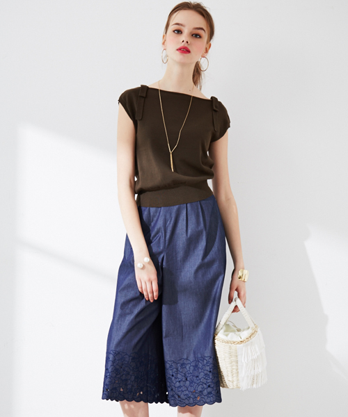 1枚で可愛く見え、さまざまなボトムと着回し上手なスプリングニット。緩やかなドレープを描くネックラインに、肩のリボンディティールがプロポらしいポイント。コットンベースに、レーヨンとナイロンをブレンドした肌触りの良い素材で着心地も良好です。旬のおしゃれが楽しくなる4色をご用意しました。