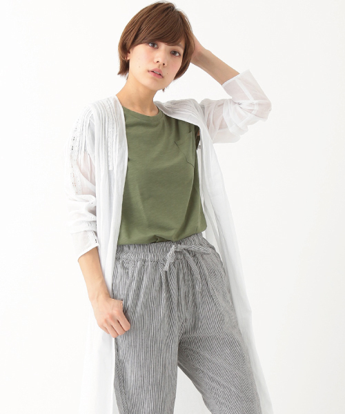 生地表面に表情のあるスラブ糸を使用した無地Tシャツ。胸ポケットがカジュアルな印象。適度にフィットするコンパクトなサイズ感なのできれいめに着こなしていただけます。テーパードパンツやスキニーパンツ×ジャケット等のマニッシュなコーディネートがオススメです。