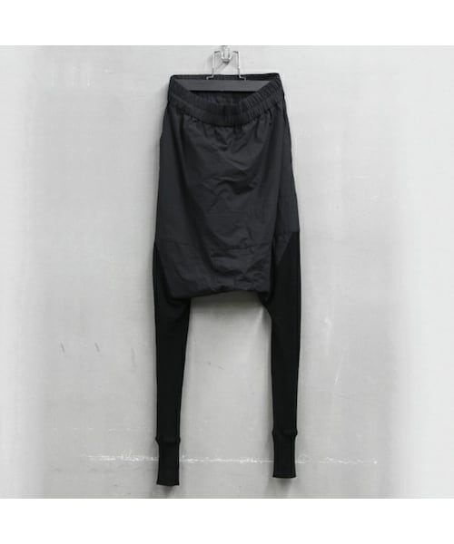 素材にCOTTO CRAPEとTYPEWRITERを使用した コンビタイプのサルエルパンツ。 股上の部分はハリのあるシルエットになり膝から裾にかけては 伸びが良くは着心地が良い質感です。