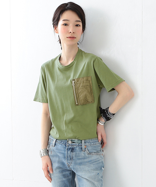 注目の日本ブランドJFのTシャツが登場! 今シーズンのテーマはJFという架空の軍隊をイメージしたJ.F.ARMY INFANTRY。 胸元にMA-1のシガーポケットを再現した一枚は、ネックラインと袖口のUSED感が都会的かつ洗練された仕上がり。 デニムはもちろん、サロペットのインナーやフェミンンなアイテムと合わせたミックススタイルがおすすめです。 JF / ジェーエフ urban(都会的),chic(洗練された),confident individuals(自分のスタイルを持った)をコンセプトに、 日本のマーケットに適応したデザインを、よりコアなタイミングかつ小ロットで提供できる生産性を確立した日本のTシャツブランドである。