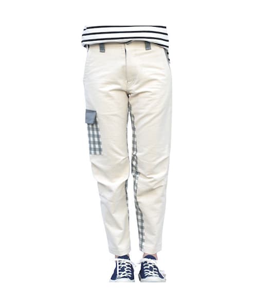 レディースモデル:身長168cm XSサイズ着用 ◆サイズXS ウエスト72cmレングス90cm裾幅16cm ◆サイズS ウエスト80cmレングス96cm裾幅18cm ◆サイズM ウエスト84cmレングス96cm裾幅18cm ◆サイズ L ウエスト88cmレングス98cm裾幅18cm ◆混率 綿100% ◆商品説明 春らしいホワイトデニムとポイントでのチェックが個性的なパンツです。 股の内側のデザインと外についたポケットがアクセントになってシンプルなトップスでも個性的なスタイルにしてくれます。 年間通して着用出来てシンプルだけど、ちょっとした遊び心のあるパンツです。 【生地と縫製について】 NIRAME.COのアイテムは、すべて日本製の生地を使用しておりどのアイテムも長く着用してもらえるようなものを選んでおります。また縫製は信頼のおける日本の職人が、裁断から仕上げまで1人で担当致します。その為工場の様に大量にはお作り出来ませんが、どのアイテムも思いのこもった逸品です。 【在庫なしアイテムとサイズ変更について】 現在すぐにお届け出来るアイテムが無い場合は、ご注文後あなたの為に1から職人がお作り致します。その為、発送までに約10日~2週間程お時間を頂きます。再生産の場合は、既存のサイズ(XS、S、M、L)などに関しては金額に変更はございません。 もし、お好みで着丈を伸ばしたいやもっと大きいサイズが欲しい等要望があれば以下のリンクよりお直しサービスを御利用ください。 http://nirameco.net/items/548d09fa86b188d138002f3c 【メールでのお問合せについて】 下にある『このアイテムについて問い合わせる』のボタンをクリック後、お名前とメールアドレス、お問合せ内容をご記入下さい。その場合、gmail.comからのドメイン指定の解除をお願い致します。(電話番号を記入頂ければ、もしメールが送信できない場合はお電話を差し上げます) 【LINE@でのお問合せ】 LINE ID⇒@bgc6811cを検索すると、NIRAME.COの公式アカウントを見つける事が出来ます。友達追加後トークで1対1でのやりとりが可能です。写真など細かくやりとりが出来ますのでより詳しく内容をお話しする事が可能です。