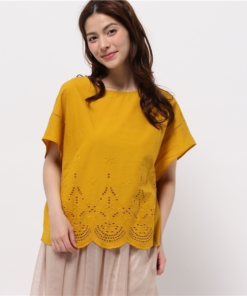 軽やかなタッチが涼しげな綿ローンのブラウスは、スカラップ刺繍やはしごレースがチャーミング!ボヘミアンな雰囲気のスクエアフォルムが今季らしいデザイン。ネックは広めに開いているのでヌケ感が加わり、デコルテの華奢見せで女性らしさもUP!体型カバーもしてくれるフェミニンなアイテムは、デニムパンツやテーパードパンツなどスタイリッシュなボトム合わせで着こなして。