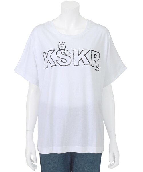 ネ・ネット定番の「 ○○さん 」シリーズの「 くさかりさん 」をプリントしたTシャツ。くさかりさんのフサフサとした立派なひげは芝でできています。ロゴの「 KSKR 」は「 KuSaKaRi 」の略です。掠れたようなハンコ風のプリントがポイントです。Torso:H163.5 B80 W58.5 H86 着用サイズ:02サイズ