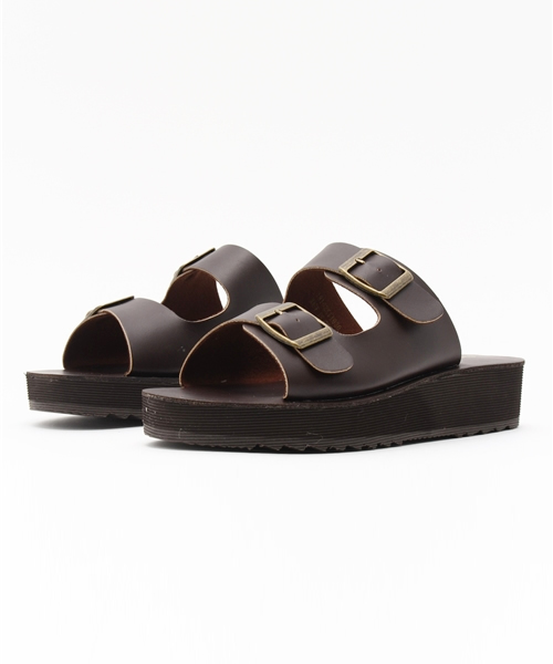 フラットなツーベルトスポーツサンダル。ソックスを合わせて履くのが旬な履き方です。ほんのりかかと部分が高くなっています。おしゃれで個性的なサンダルです。楽に履けるので、気軽に長時間歩いても疲れにくいです。