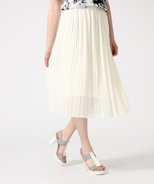 ミモレ丈のプリーツスカート。 さらっとした落ち感のある生地を使用しており、縦のラインがとてもきれいに出るように仕上げています。 また膝下のミモレ丈なので様々な靴と相性が良いです。 ウエストにはゴムを入れ、どなたでも合わせて頂けます。 ワイドシルエットのトップスと合わせるのが◎