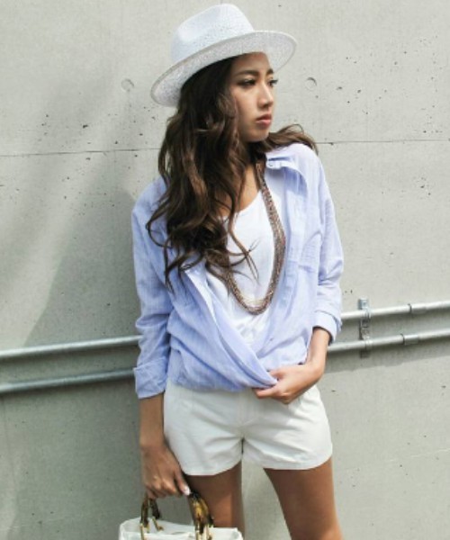 サイド裾ボタンを利用して、カシュクールタイプのブラウジングシャツとしても着れる2WAYタイプのオーバーシャツです。ストライプ2色と無地1色のカラーバリエーションになっています。