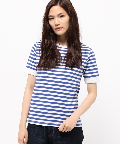 発色の良いボーダーTシャツが今年も入荷致しました。袖のリブが太めになっている点がポイント。着回しアイテムとして重宝します。