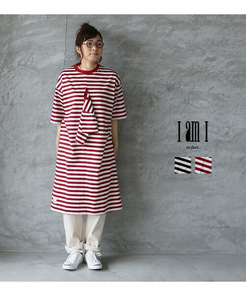 小さな赤ちゃんTシャツがくっついたボーダーワンピースです。 天竺素材で心地よい着心地、アンバランスなシルエットが可愛い1枚。 後ろのスリットやポケットもポイントです。