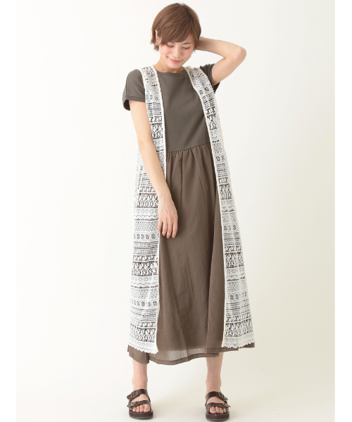 肌触りソフトな綿100%の天竺を使用した上身頃に、ほんのり透け感のあるコットンシフォンのスカートを合せたドッキングデザインのワンピース。少し肩を覆うフレンチスリーブや、ウエストラインからふんわりと軽やかに広がるシルエットが、女性らしい印象を与えます。さらっと1枚でも愛らしい雰囲気に決まるアイテムは、シャツを腰巻にしたり、ブルゾンをあわせたりと、カジュアルMixな着こなしがおすすめです。 裏地有りです。