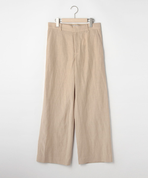 トレンドの麻混素材。甘さのないメンズライクなワイドパンツです。同素材のA0167FB269と同色またはお好みの配色でセットアップとしてお召しいただくのも素敵。また、少し甘さのあるA0167FB267とのコーディネートもおすすめです。