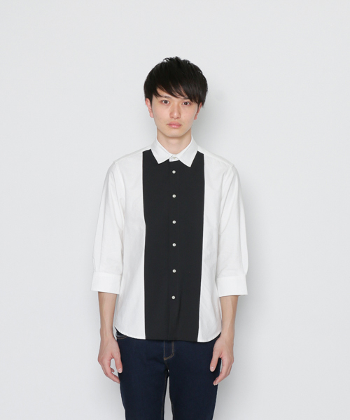 フロント部分に凹凸のある軽やかなシアサッカー生地を使用し、切替デザインを施した5分袖のシャツです。シンプルながらも切り替えのあるデコルテがこなれ感のある印象を与えます。バイカラーデザインでメリハリのある1枚です。