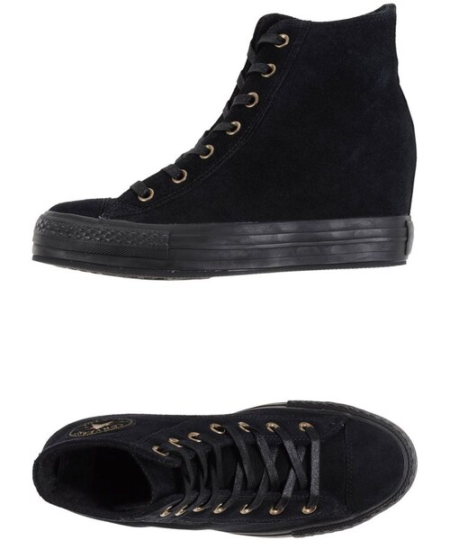 CONVERSE ALL STAR Sneakers. sueded, logo detail, solid color, laces, round toeline, rubber sole, hidden wedge, flat. Soft Leather