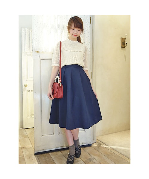 バスケット生地が目を惹く、程良くボリューミーなスカートが登場。 凹凸がある生地は、無地ながらも表情のある一枚です♪ ウエストは伸縮性があり、キュッと引き締まっているのでスタイルアップ効果も◎ どんなトップスにも合わせやすいので、ワードローブに是非加えたいアイテムです。 MATERIAL: モデル身長: 166cm 表地 ポリエステル100% 裏地 ポリエステル100% made in China サイズウエスト脇丈 Free73.5〜64.5cm72.5cm
