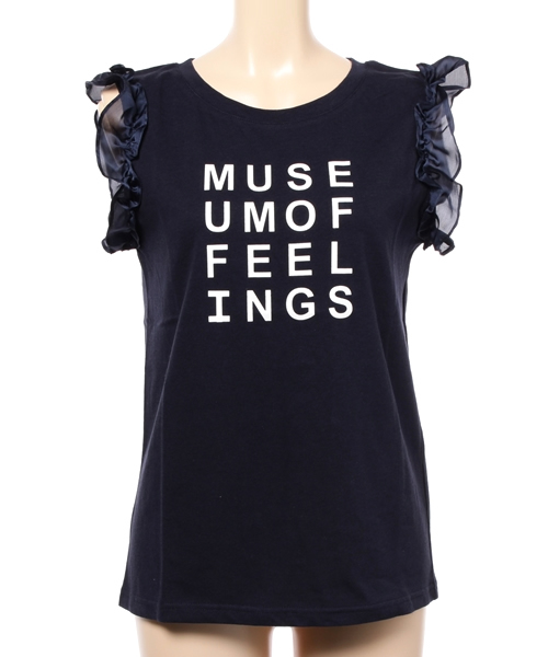 ロゴとチュールの甘辛な組み合わせが大人可愛いトップス♪ ふわっとボリューミーなチュールがコーディネートに上品さと可愛さをプラスしてくれます。 伸縮性のある、柔らかな肌触りの素材がこれからの季節にぴったり! デニムと合わせたカジュアルスタイルはもちろん、スカートと合わせてフェミニンなスタイルもオススメです☆
