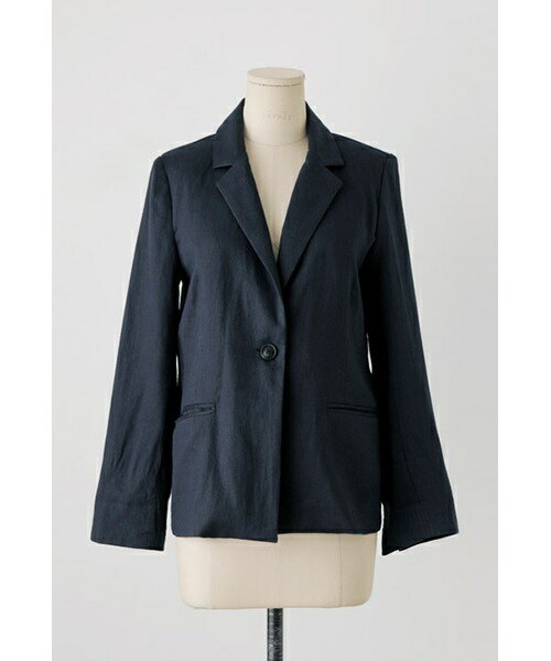 軽やかな印象の ジャケットをご紹介いたします。 裏地なしの清涼感あるつくりは これからのシーズンに大活躍間違いなし。 Vラインをすっきりと魅せるワンボタンデザインで カジュアルになりすぎないのがポイントです♪ カジュアルからお仕事と着まわし抜群の一枚です。 ショートパンツとセットでコーデするのがオススメです★ ◆COLOR :ネイビー ◆SIZE : FREE ◆モデル着用SIZE :ネイビー/FREE