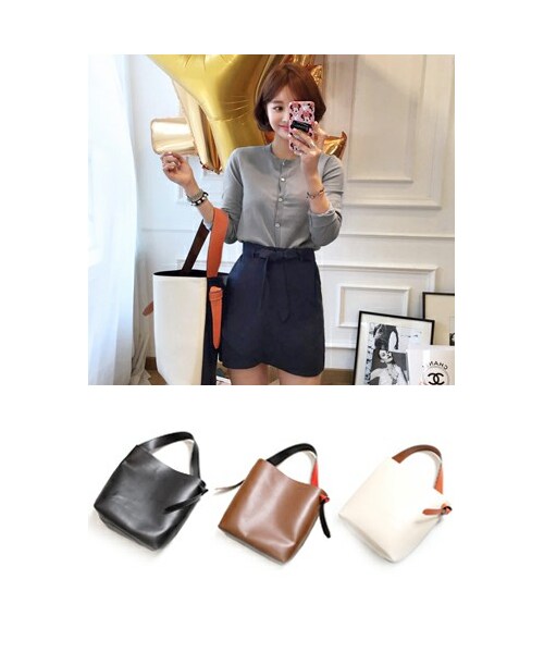 ふっくらとしたフォルムが可愛い バイカラートートバッグご紹介いたします。 お仕事用としても週末のお出かけバッグとしても 使える大き目サイズです! 持ち手の結び目がシンプルデザインのアクセントになっています。 フェイクレザーなので、型崩れしなく長持ち★ シンプルですが、配色がコーディネートの アクセントポイントになるバッグです。 ◆COLOR : ブラック×ブラック、アイボリー×ネイビー、ライトブラウン×ダークブラウン ◆SIZE : FREE ◆モデル着用COLOR :アイボリー×ネイビー/FREE