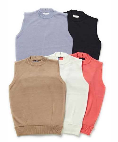 吸水速乾・UVカット効果のある"ミニクレ"糸を使用したノースリーブニット。 バックスタイルのネックの切れ込みがレディなムードで、1枚で着ても美しいデザイン。さりげなく大人な印象を与えてくれるシェルボタンも魅力的です。 裾部分にはタックが入っており、程よくボリューム感がでるきれいなシルエット。さらりとした着心地と上品なシルエットで、オフィススタイルにもオススメです。 同素材のカーディガンと一緒に、アンサンブルとしての着こなしも◎