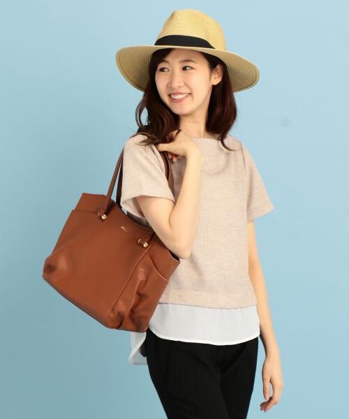 裾をシャツのようなラウンドへムで切り替えた、手軽におしゃれなレイヤードスタイルが実現するトップス。ネックラインはデコルテを綺麗に引き立てるボートネックを採用。シンプルな無地デザインはボトムを選ばない着回し力の高さも魅力です。吉田友利恵:170cm