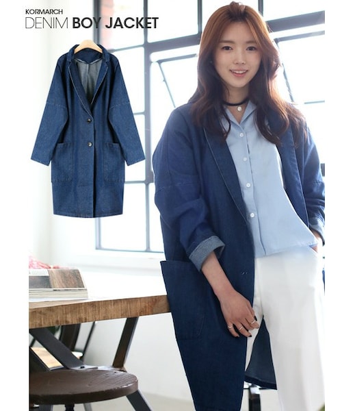 ビッグデニムロングジャケット★春の定番アウターとしてデイリーで大活躍。定番人気のデニムアイテム!クラッシュ加工がCOOLなデニムロングジャケット★こなれた感を演出してくれる一枚**