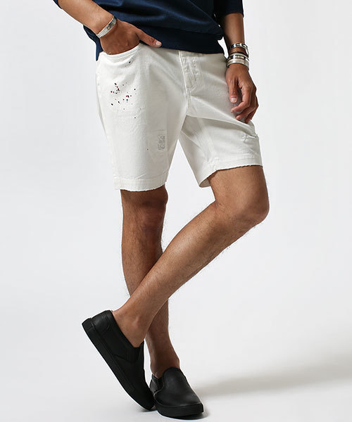 nano・universe (ナノ・ユニバース)ペンキとリペアでヴィンテージ感漂う仕上がりハンドリメイクと、ペンキを飛ばしコーディネートのアクセントになるようなさり気ないデザイン性を持ったパンツ。生地に洗いをかけ風合いを出し、ヴィンテージ感のある色味とソフトな着用感も魅力です。こちらの製品はリメイク商品独特のUSED感、自然な色落ちや風合いの生地感を表現する為、製品に特殊洗いをかけております。その為、一点一点若干サイズ感や単一製品の中でも部位によって色目や加工感が異なりますがデザインとして意図的なものです。洗濯:洗濯機使用可