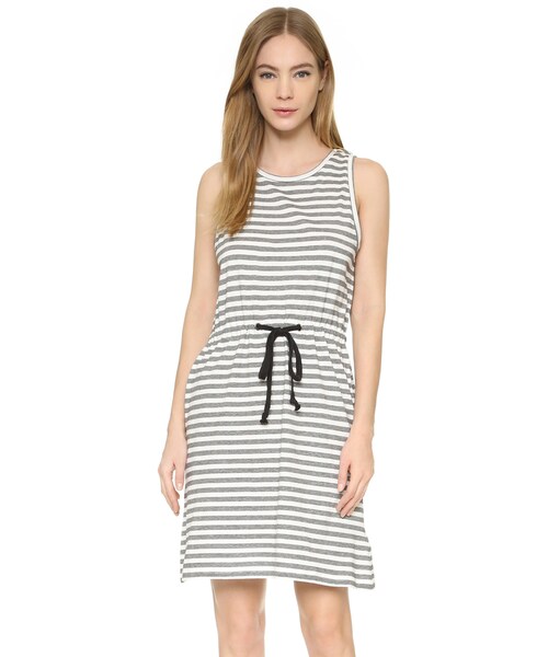 A formfitting Cheap Monday dress, accented with thin two-tone stripes. Drawstring waist. On-seam pockets. Sleeveless. Unlined. Fabric: Jersey. 100% cotton. Wash warm. Imported, Bangladesh. Measurements Length: 35.75in / 91cm, from shoulder Measurements from size S