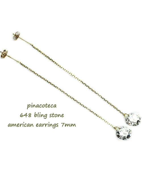 「 Bling 」 キラキラと輝くルースのままのストーン こちらは7ミリのキュービックジルコニアを使用した華奢ピアスです。 5センチの華奢なチェーンに揺れるストーン ピアスに思わず視線が向かいます。 18金のキラキラと輝くチェーン、そしてくシンプルなストーンピアスは、身に着けるシーンを問わずお使い頂けます。 大きめキュービックジルコニアで華やかさをさらにプラスしてくれる ピアスです。 18金イエローゴールド製