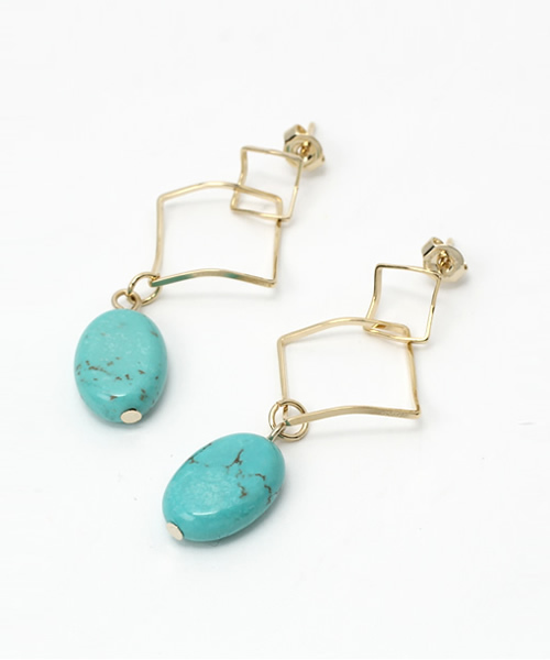 フェミニンな華奢シルエットに揺れる1粒のストーン。変形ダイヤとの絶妙バランスがポイントのピアス。 華奢なフォルムの変形ダイヤにストーンをあしらったピアス。ストーンが放つナチュラルなツヤ感がシャープなダイヤモチーフをやわらかく包み込で女性らしい雰囲気に。さりげないサイズ感と、主張しすぎないデザインがデイリーに使いやすいアイテムです。