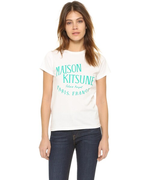 Parisian lettering accents the front of this Maison Kitsune tee. Crew neckline. Short sleeves. Fabric: Jersey. 100% cotton. Wash cold or dry clean. Made in Portugal. Measurements Length: 24.5in / 62cm, from shoulder Measurements from size S